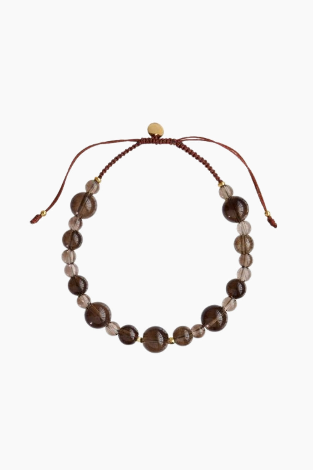 Cherie Bon Bon Bracelet fra Stine A Jewelry er et elegant og delikat armbånd håndlavet med smukke røgkvarts-inspirerede perler i varme brunlige nuancer. Armbåndet er designet med justerbar knude, så det nemt kan tilpasses håndleddet og bæres alene eller i en personlig stack. Armbåndet er håndknyttet.