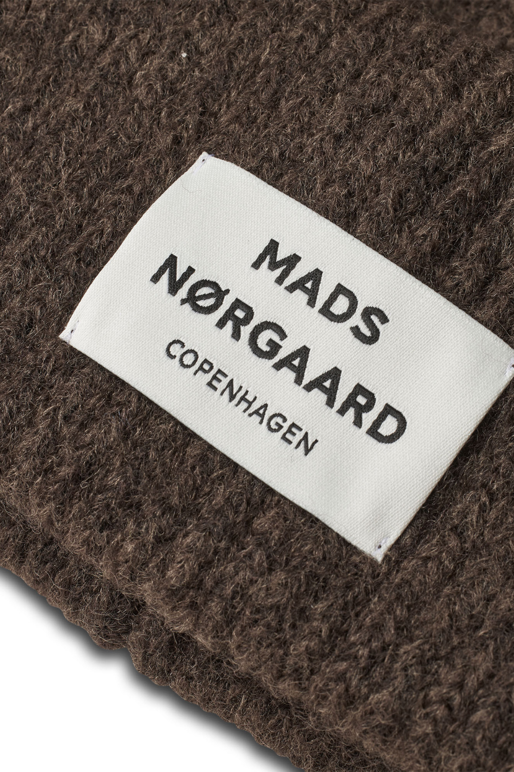 Tosca Anju Hat er en klassisk hue fra Mads Nørgaard, strikket i en blød og varm uldblanding. Den har en ribstrikket struktur og et bredt opsmøg med et påsyet logo foran, der giver et enkelt og stilrent udtryk. Den mørkebrune farve gør huen nem at kombinere med sæsonens øvrige garderobe, og den er perfekt til de kolde måneder, hvor både varme og stil er i fokus.