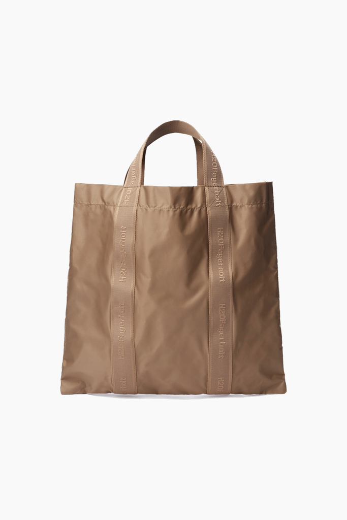 Shopper Bag i Walnut fra H2O Fagerholt er en nylon taske med hank. Tasken har H2O Fagerholts logo er broderet på taskens hanke. Tasken har ét stort rummeligt rum. Det er den perfekte taske til skole, arbejde, indkøb, eller andre hverdagsaktiviter.