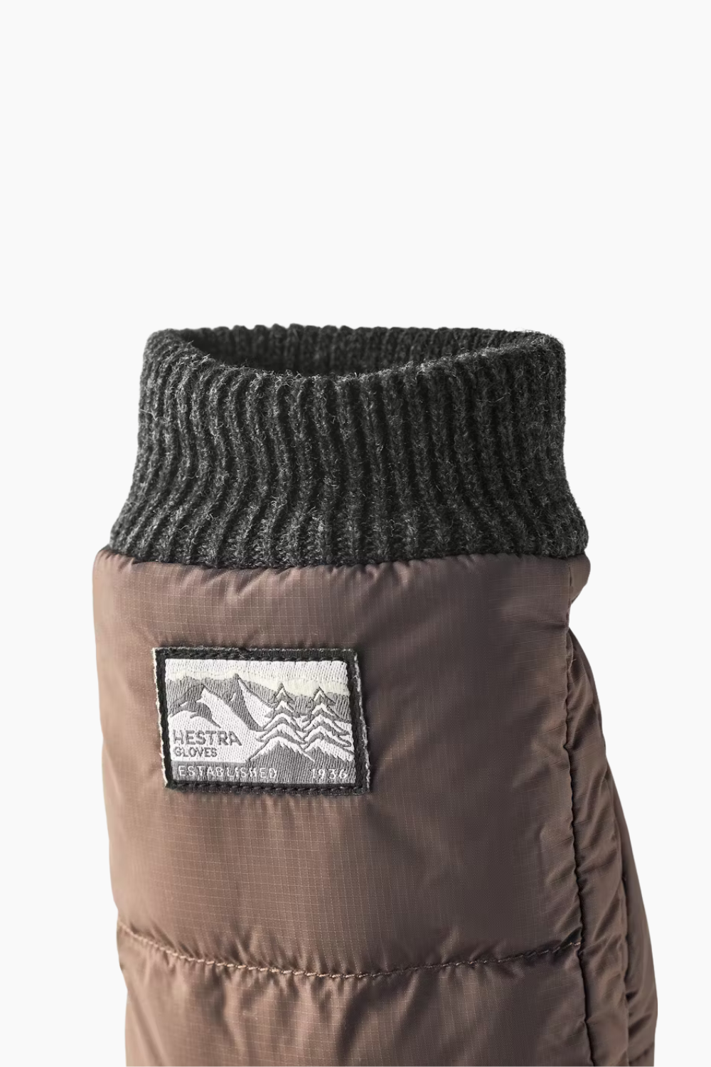 Den quiltede Otra MItten fra Hestra kombinerer funktionalitet og tidløst design i ét. Vanten er designet med et let og varmende Primaloft Gold fyld, der sikrer optimal isolering på kolde dage. Den har en blød ribkant i uldblanding, der holder kulden ude og sikrer en behagelig pasform omkring håndleddet. Det udvendige materiale er vind- og vandafvisende, perfekt til vinterens skiftende vejr. Et klassisk Hestra-logo patch fuldender designet med et retro-inspireret udtryk