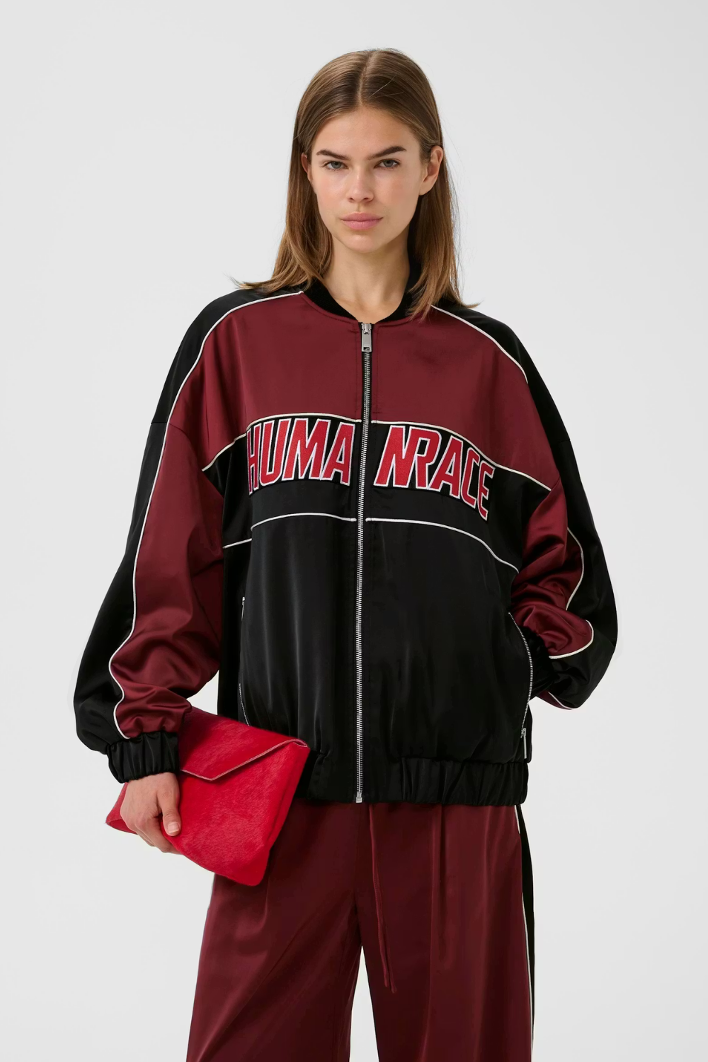 GZTracy Jacket fra Gestuz er en statement-bomberjakke med en afslappet, bokset pasform og eksklusiv satin-finish. Den dybe Cabernet/Red farvekombination giver et markant og moderne udtryk, der skiller sig ud. Designet er fuldendt med ribkrave, lynlåslukning foran og elastiske manchetter, som understreger det klassiske bomberlook. Det iøjnefaldende “HUMAN RACE” statement tilfører kant og attitude, hvilket gør jakken til et stærkt styling-piece i enhver garderobe.