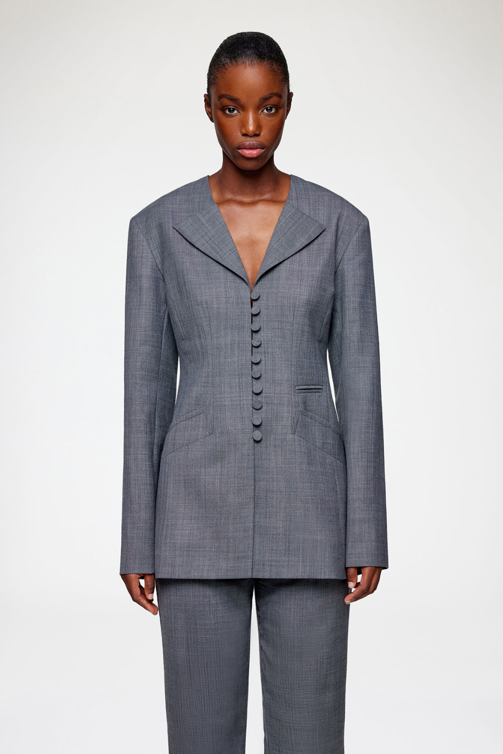 Wool Melange Suiting Long Button Blazer A1020052 - Phantom - GANNI