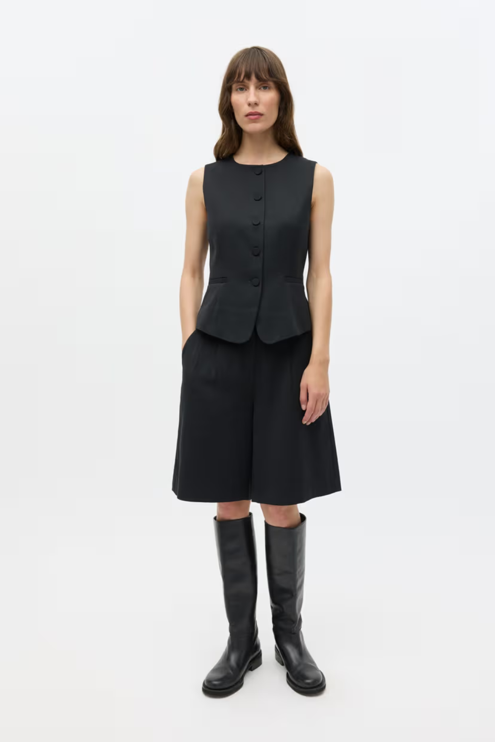 Disse elegante, sorte Endore bermudashorts fra Envii er den perfekte kombination af tailoring og afslappet stil. Shortsene er skåret i en struktureret, men blød kvalitet, der falder flot om benene og skaber en flatterende silhuet. Den høje talje og det let A-formede snit giver et moderne og sofistikeret udtryk, som nemt kan styles op med en vest eller skjorte – eller ned med en T-shirt og sandaler.