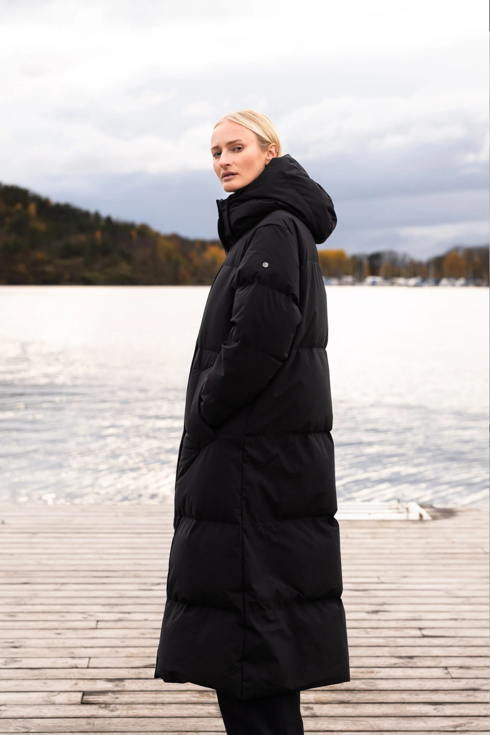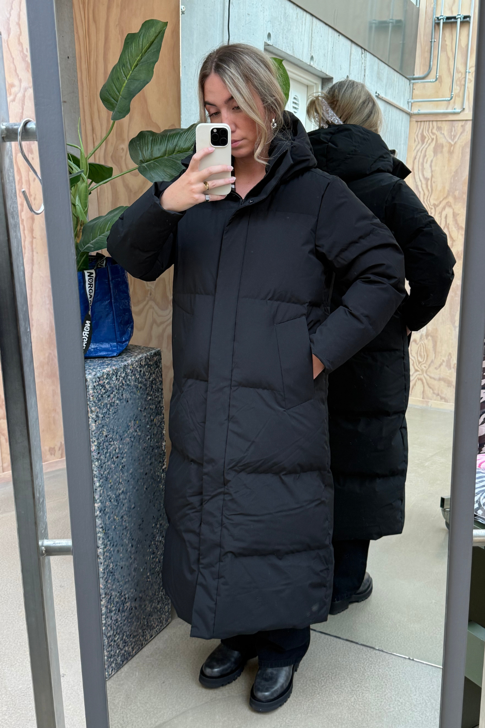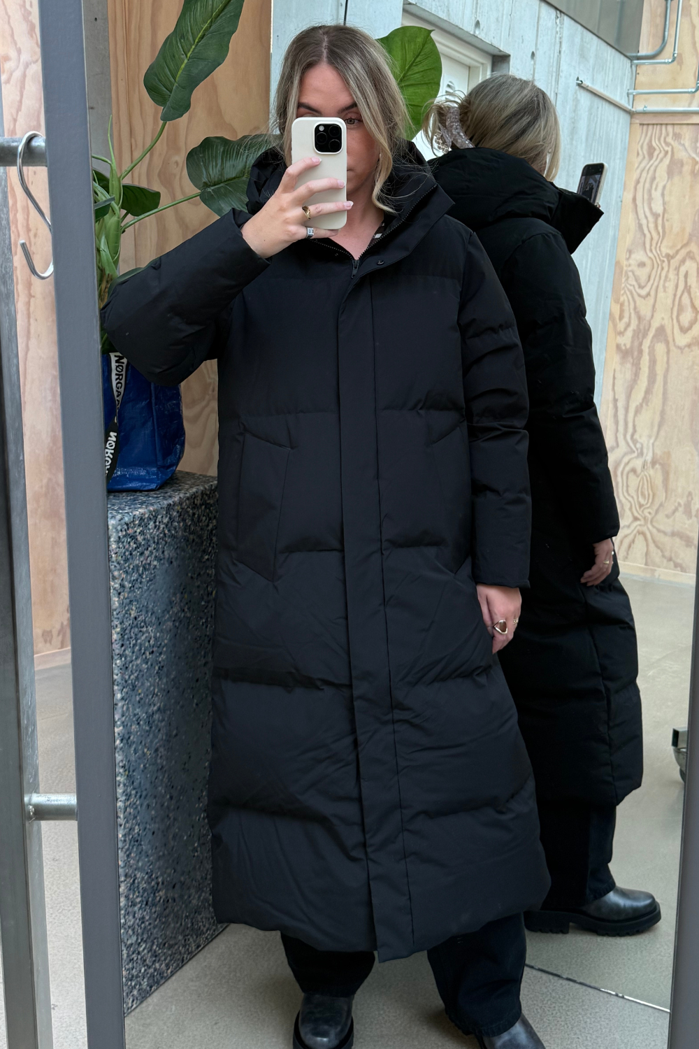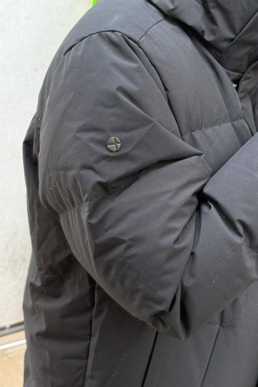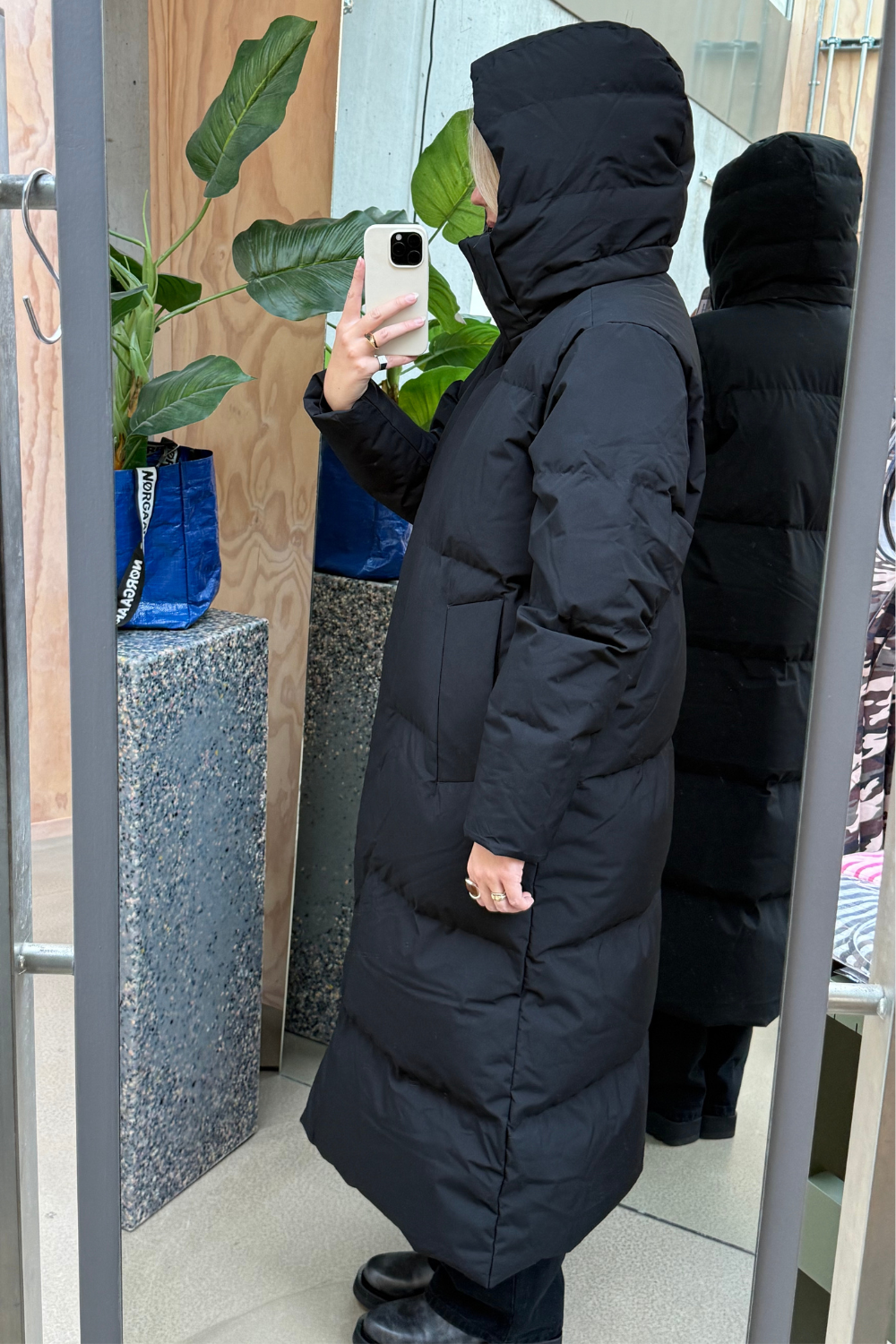 Astro Jacket i farven Onyx fra Scandinavian Edition er en super lækker dunjakke vævet sammen i baner, som giver et super cool udtryk. Jakken er designet med en aftagelig høj hætte, der beskytter mod kulden, og har både to sidelommer og en praktisk inderlomme med lynlås til opbevaring af småting. Med tovejslynlås og knaplukning kan du lukke helt af for efterårets og vinterens kolde vejr. Den lette dunfyldning sikrer høj komfort og varme, uden at jakken føles tung. Astro Jacket er derfor et oplagt valg til både hverdagsbrug og byens mere stilfulde anledninger.
