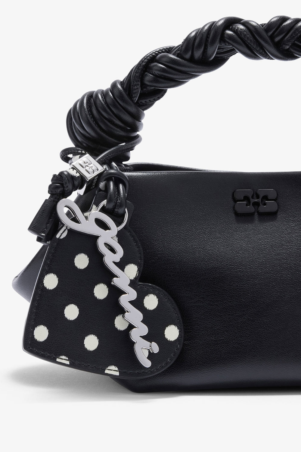 Giv din taske et legende twist med denne polkaprikkede hjerte–bag charm fra GANNI. Charm’en er udformet i et sort-hvidt prikket mønster med et udskåret hjerte og et elegant, sølvfarvet GANNI-logo, der skaber et iøjnefaldende, feminin statement-look. Den justerbare strop gør den nem at fastgøre på alt fra håndtasker til nøgleringe. Et lille accessory med stor effekt – perfekt til at personliggøre dine yndlings-items.