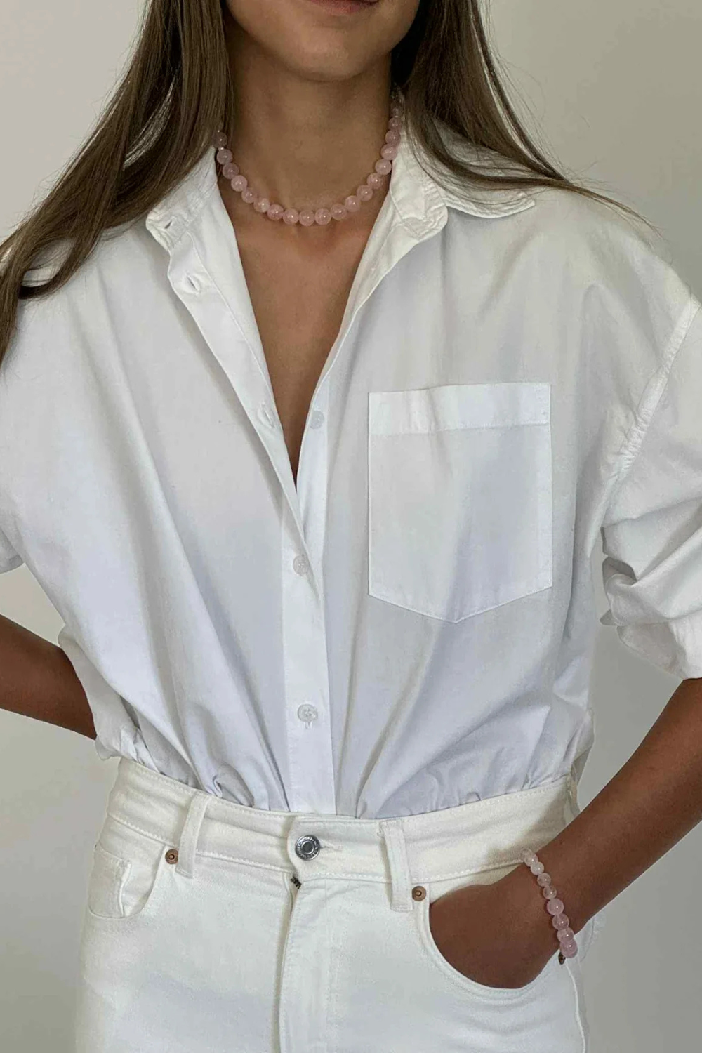 Love Necklace i Forgyldt fra Sorelle er den fineste halskæde med lyserøde rosakvarts og små ferskvandsperler. Halvædelstenen repræsenterer kærlighed og ro, hvilket halskæden er designet til at hylde samt at omfavne selvomsorg og harmoni. Den skiller sig ud fra mængden, og kan bruges alene eller med andre fine kæder. Den kan pifte ethvert outfit op!