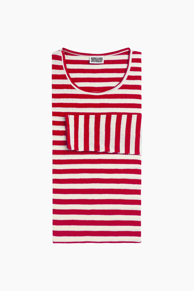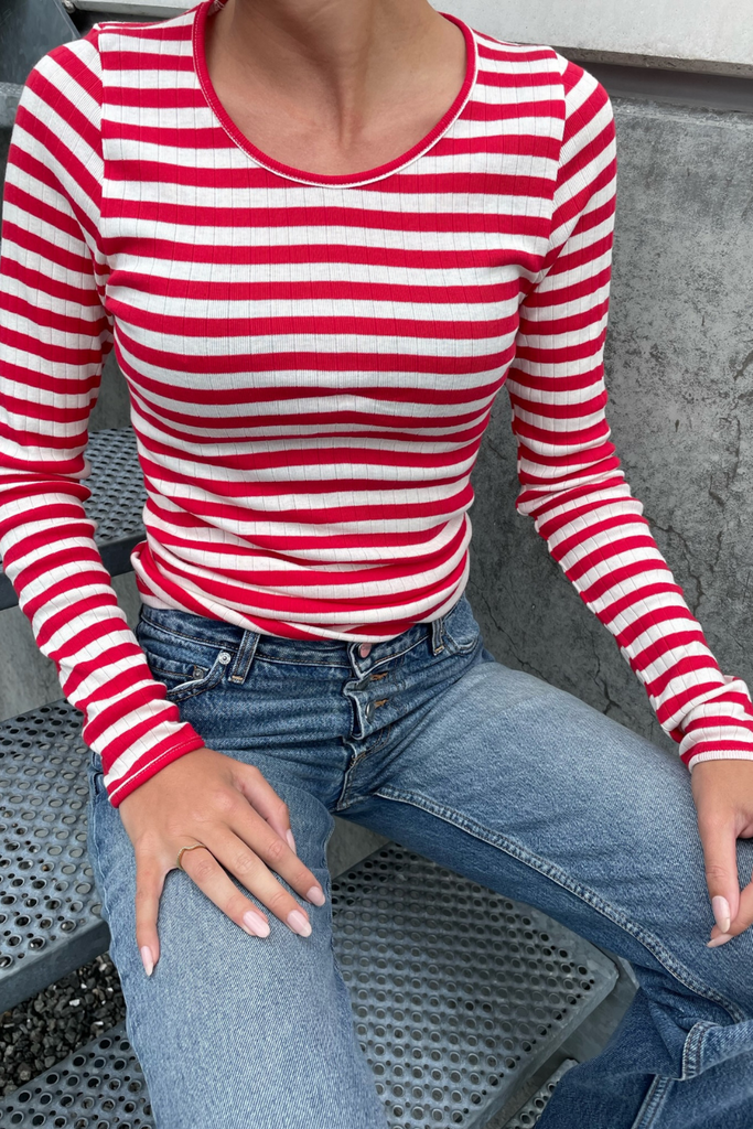 Den klassiske 101 T-shirt, har struktur med vertikale stiber, og findes i flere farver, og mønstre. Denne langærmede, dobbelt stribet t-shirt, i farverne rød og hvid er et musthave i enhver gaderobe.