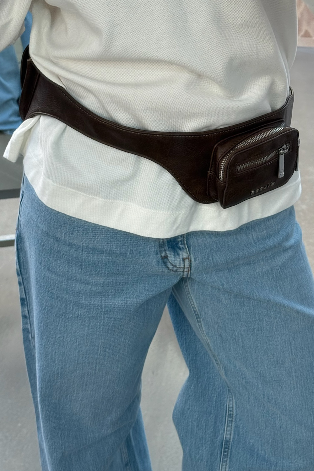 Opgrader dit look med denne unikke bæltetaske fra Silfen i en smuk brun. Tasken har to separate rum – en rund frontlomme med klaplukning og en praktisk lynlåslomme bagpå med logo-detalje. Den bæres elegant omkring taljen som et bælte og fungerer perfekt til både styling og opbevaring af små nødvendigheder. En perfekt kombination af funktion og fashion – ideel til festivaler, hverdagsbrug eller når du bare vil tilføje lidt ekstra kant til outfittet.