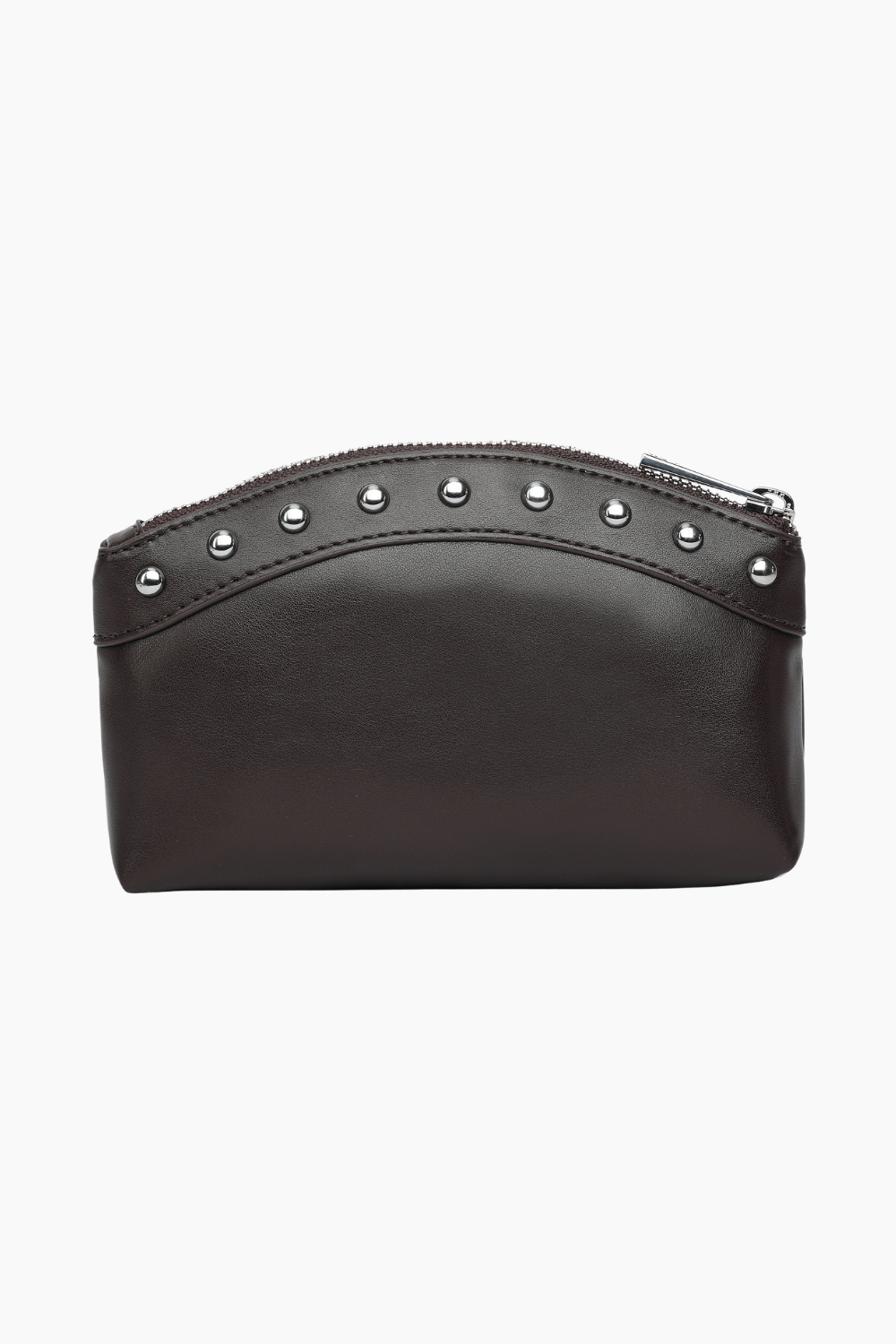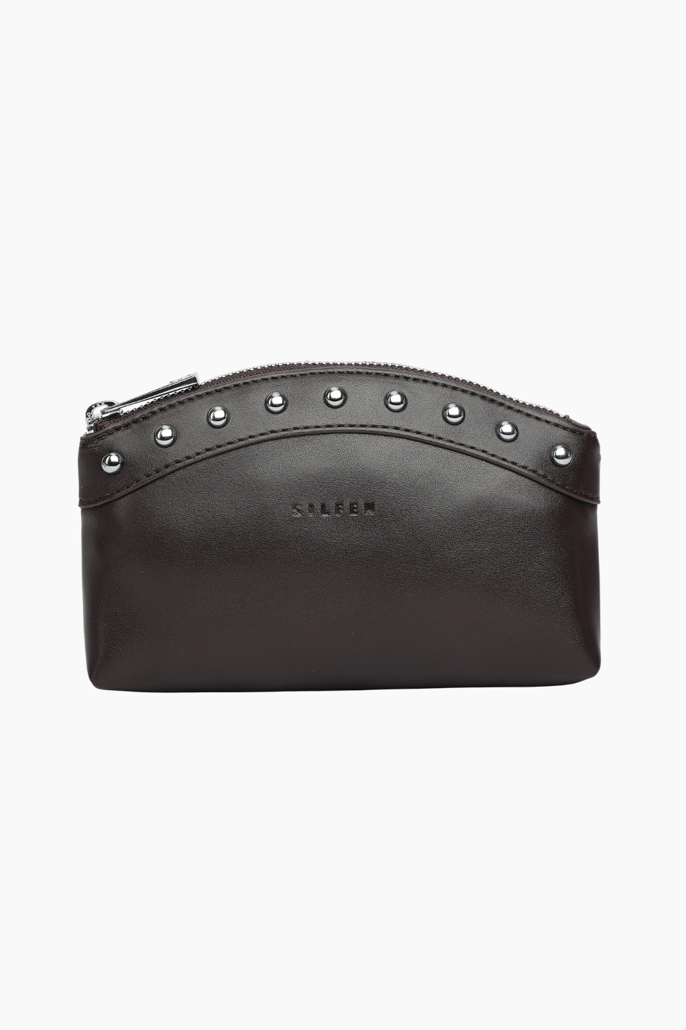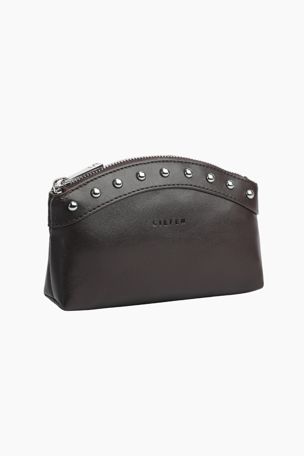 Minnie Pouch i farven Hickory fra Silfen Studio er den perfekte pung til hverdagens småting som nøgler og makeup. Pungen er designet i et blødt materiale med dekorative sølvfarvede nitter, som giver et touch.