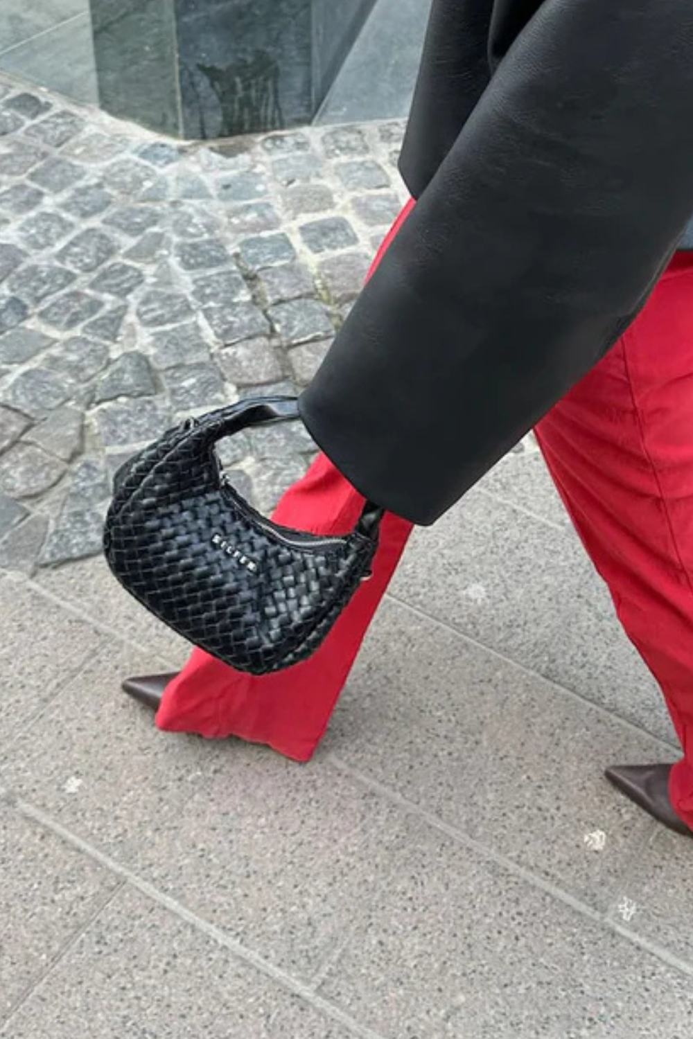 Denne Mona Handbag taske i farven Black kombinerer et flettet vintage læderlook med moderne funktionalitet. Tasken er konstrueret med et foldet sidepanel, der gør den overraskende rummelig – perfekt til alle dine festessentials eller hverdagsnødvendigheder. Med både kort hank og aftagelig skulderrem er den behagelig at bære, mens det classy design løfter ethvert outfit