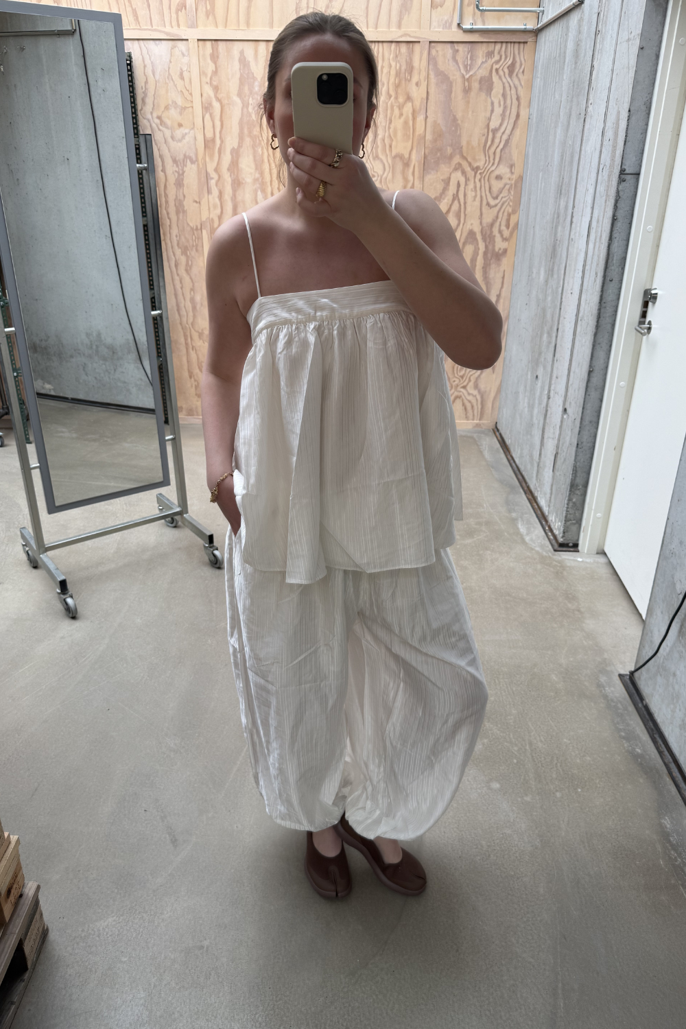 Striped Slip Top er en let og elegant top med et feminint og afslappet udtryk. Den løse A-formede silhuet kombineret med de tynde stropper og den lige halsudskæring giver et minimalistisk og sofistikeret look. Den let rynkede pasform skaber bevægelse og et smukt fald. Det diskrete stribede stof tilfører struktur og en raffineret glans, som løfter designet. Toppen er foret for ekstra komfort.