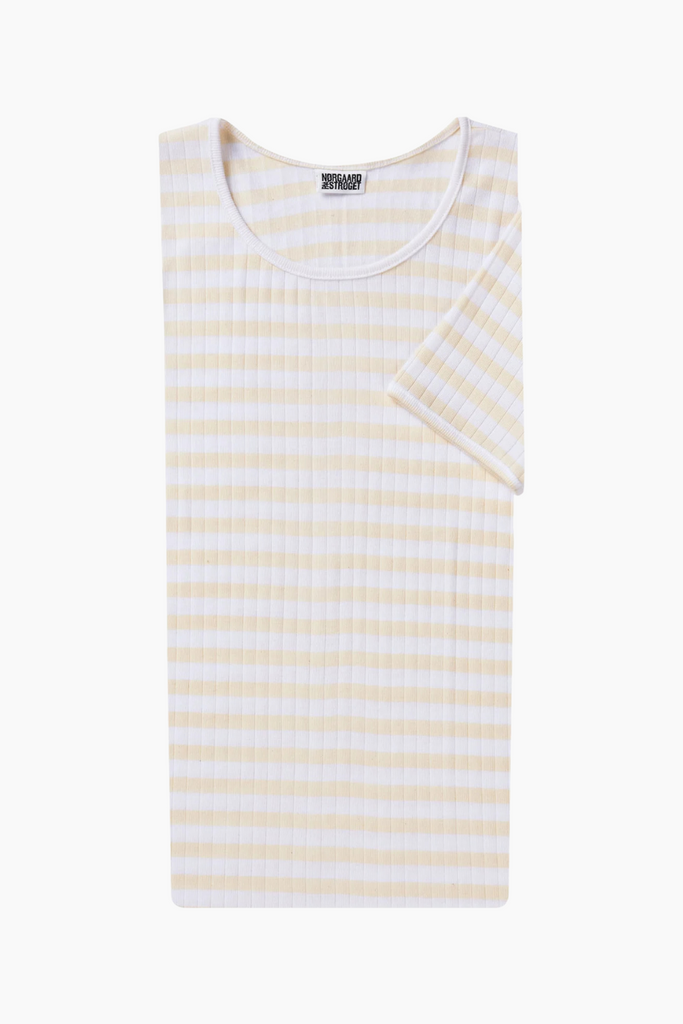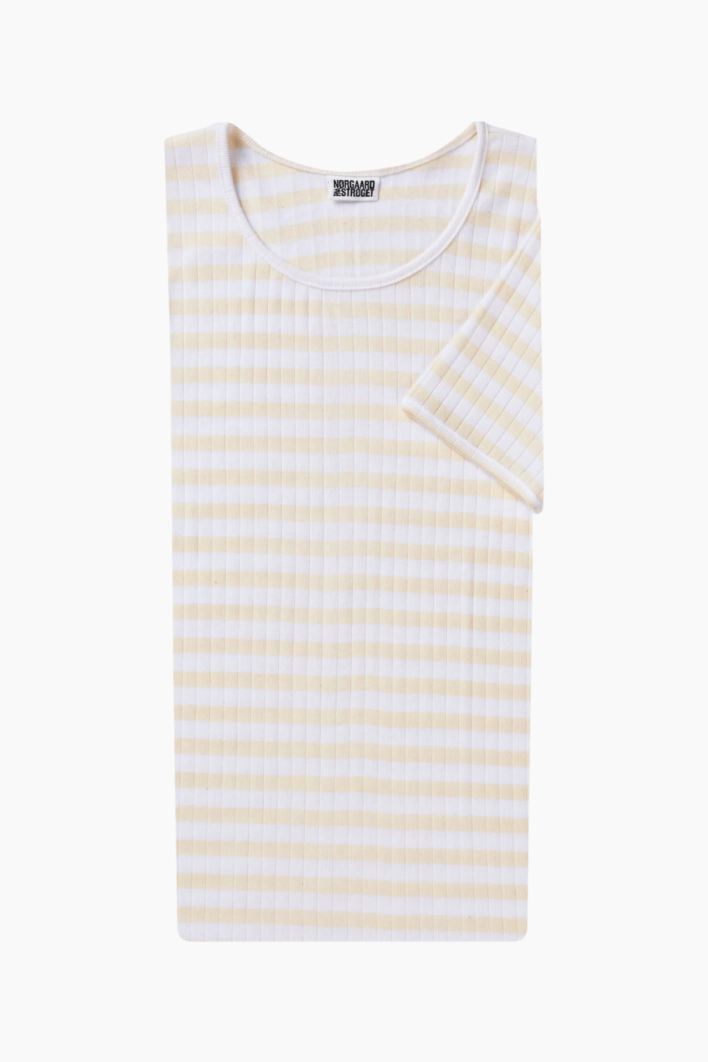 Den klassiske 101 T-shirt, har struktur med vertikale striber, og findes i flere farver og mønstre. Denne langærmede, dobbelt stribet t-shirt, i farverne hvid og ecru er et musthave i enhver gaderobe.