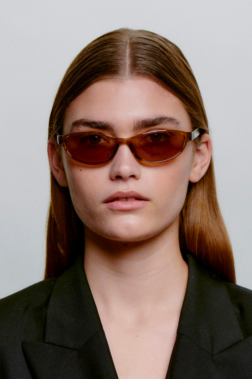 Alexa i Smoke Transparent kombinerer en slank cat-eye silhuet med en kølig, transparent tone. De præcise linjer og den markante form giver et moderne og næsten futuristisk udtryk. En iøjnefaldende model, der tilfører skarphed og personlighed til selv det mest enkle outfit.