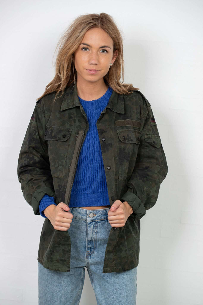 Cool, vintage camouflage skjorte/jakke! Fuldend dit outfit og få det helt rigtige look med denne unikke army jakke. De er alle forskellige og bærer på hver sin historie.