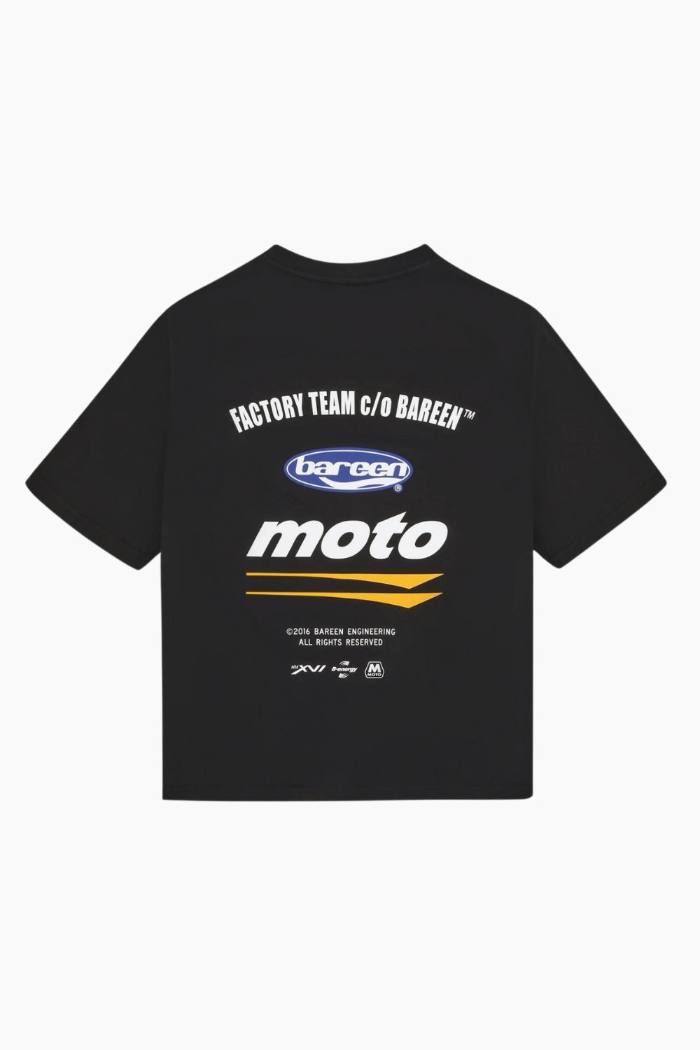 Box Fit T-shirt Moto fra Bareen kombinerer motorsportsinspireret grafik med et moderne, afslappet udtryk. T-shirten er designet i en boxy pasform med let dropped shoulders. Fremstillet i blød bomuld for høj komfort og holdbarhed. Det diskrete logo på brystet balanceres af det markante print på ryggen, der understreger Bareens racing-DNA. Perfekt til hverdagsbrug – alene eller som del af et layered outfit.