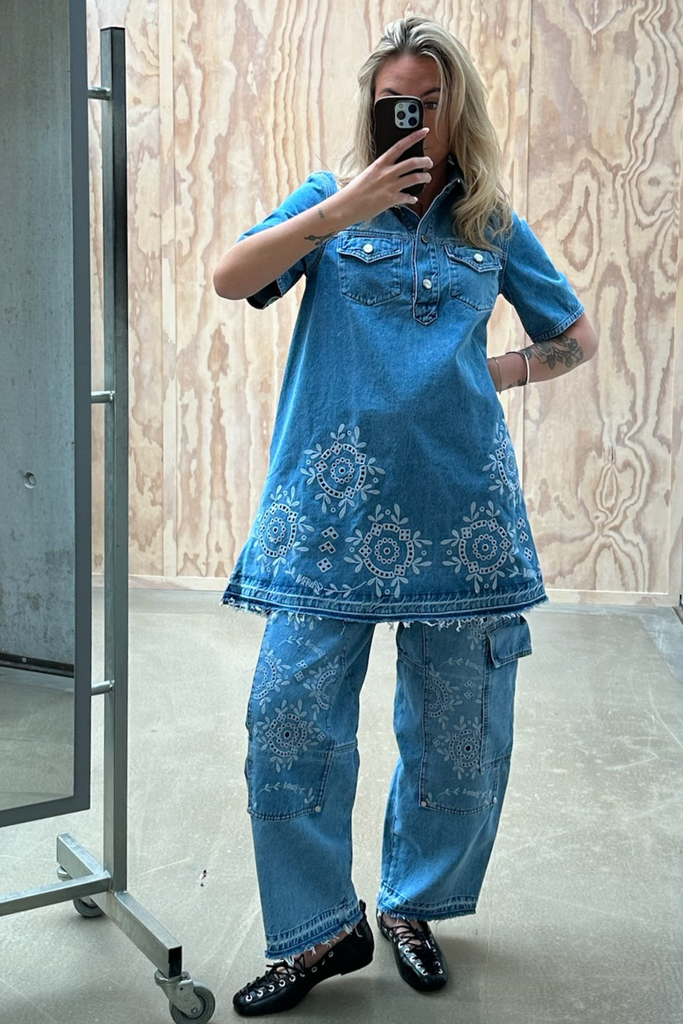 Prøv at sætte en kort oversized Ganni kjole sammen med et par mønstrede strømpebukser og chunky boots for et look, der forener noget cute og råt. Du kan også dresse din Ganni kjole ned ved at tage et par lækre jeans under og iføre dig dine yndlingssneakers til. Skal du direkte fra arbejde til fest, kan du hurtigt og nemt gøre dit look festligt ved at skifte sneakers ud med et par høje hæle.