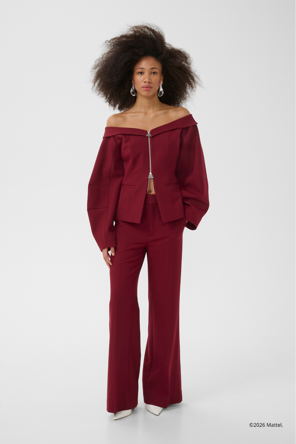 BXGbabara Blazer i Ripasso fra Gestuz x Barbie er en elegant og statement blazer med et feminint og moderne snit. Den dybe Ripasso-farve giver et sofistikeret udtryk, mens den figursyede silhuet fremhæver kroppen på en flatterende måde. Blazeren kombinerer klassisk tailoring med et fashion-forward twist fra det ikoniske samarbejde.