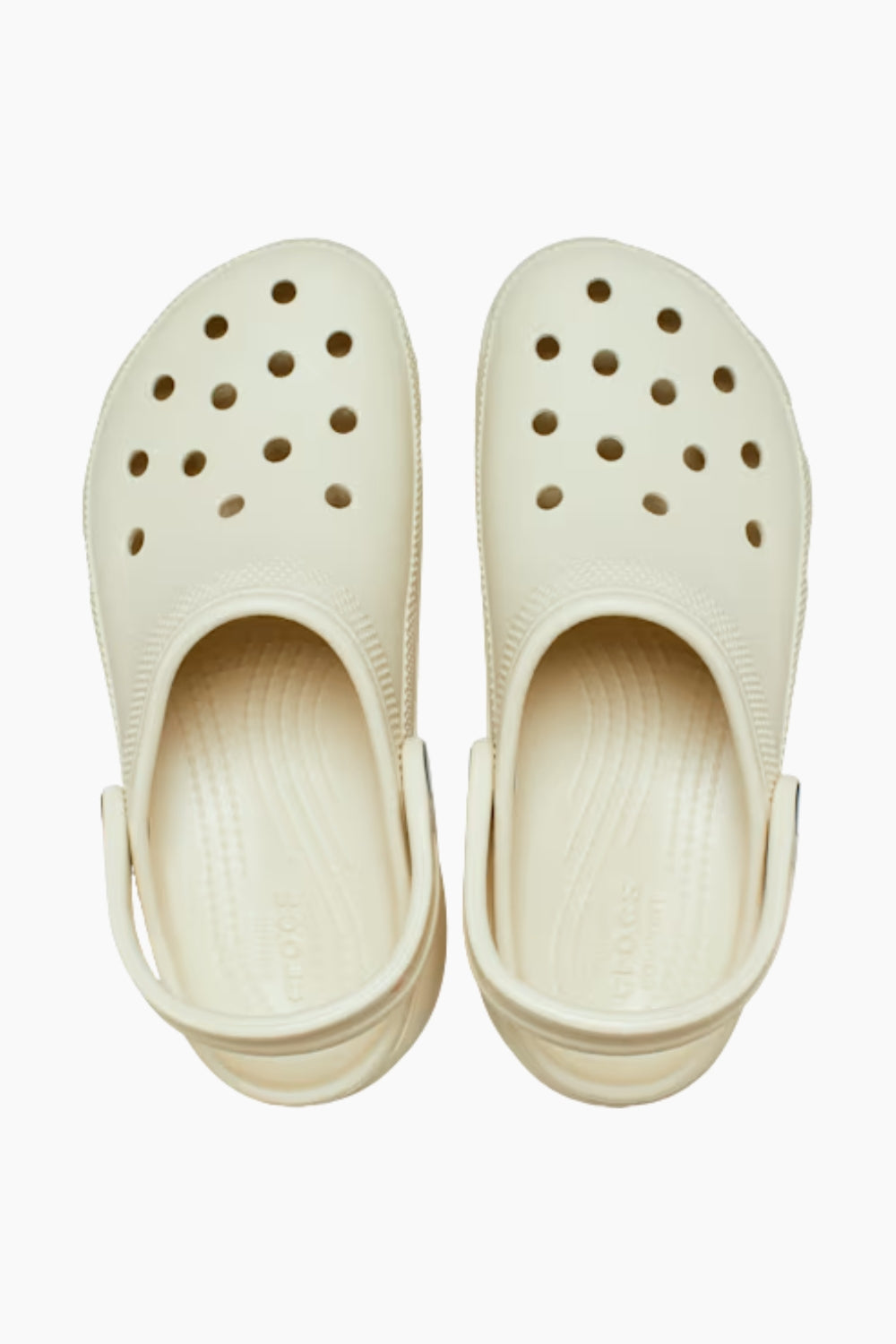 Classic Platform Clog er et moderne take på den ikoniske Crocs – designet til dig, der vil have både komfort og et trendy udtryk. Med den høje platformsål får du ekstra højde og et chunky look, uden at gå på kompromis med den lette og bløde følelse, Crocs er kendt for. De klassiske ventilationshuller giver åndbarhed og mulighed for at tilpasse skoen med charms, så du kan gøre dem helt personlige. Perfekte til både hverdagsbrug, streetstyle og afslappede dage, hvor komfort er nøgleordet.
