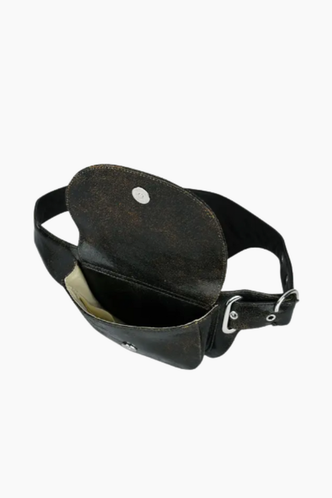 Eliza Belt i Yellow fra Silfen Studio er en kombination af et bælte og en taske - et ikonisk statement i ægte læder – nu med en eksklusiv krakeleret finish. Designet er både praktisk og sofistikeret, og den justerbare rem (XS–L) gør det muligt at bære den tæt omkring taljen eller løst på hoften. Den store lomme lukkes med en magnetknap og den lille lomme, som består af to rum, lukkes med lynlås. Med sin elegante struktur og rå finish er ELIZA lige dele luksus og attitude – uanset om du styler den til hverdag eller aften.