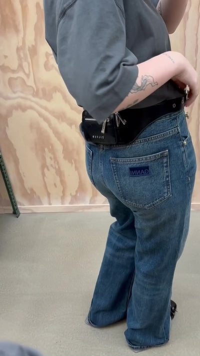 Eliza Belt i farven Black fra Silfen Studio er en kombination af et bælte og en taske i sort shiny PU. Bæltetasken er justerbar fra størrelse XS-L, og har to lommer i forskellige størrelser. Den store lomme lukkes med en magnetknap og den lille lomme, som består af to rum, lukkes med lynlås. Du kan nemt bruge tasken til både dit hverdagsoutfit og festlige anledninger.