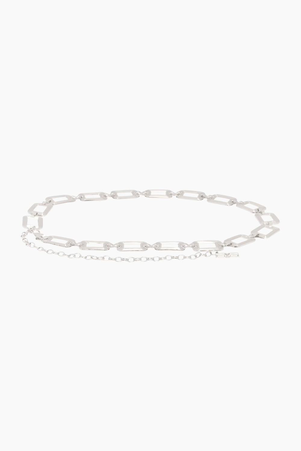 Dette elegante kædebælte i sølvlook tilfører et stilrent og moderne udtryk til ethvert outfit. Bæltet er designet med firkantede led, der giver et grafisk og eksklusivt look, mens den justerbare kædelukning sikrer en fleksibel pasform. Brug det i taljen over kjoler, blazere eller strik - eller lavt på hoften for et mere afslappet udtryk. Et alsidigt accessory, der løfter både hverdags- og festlooks.