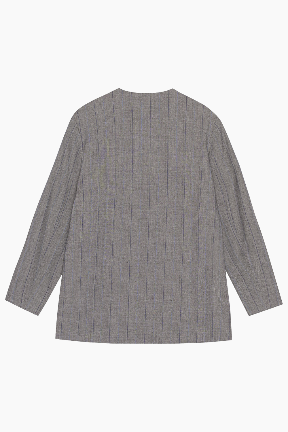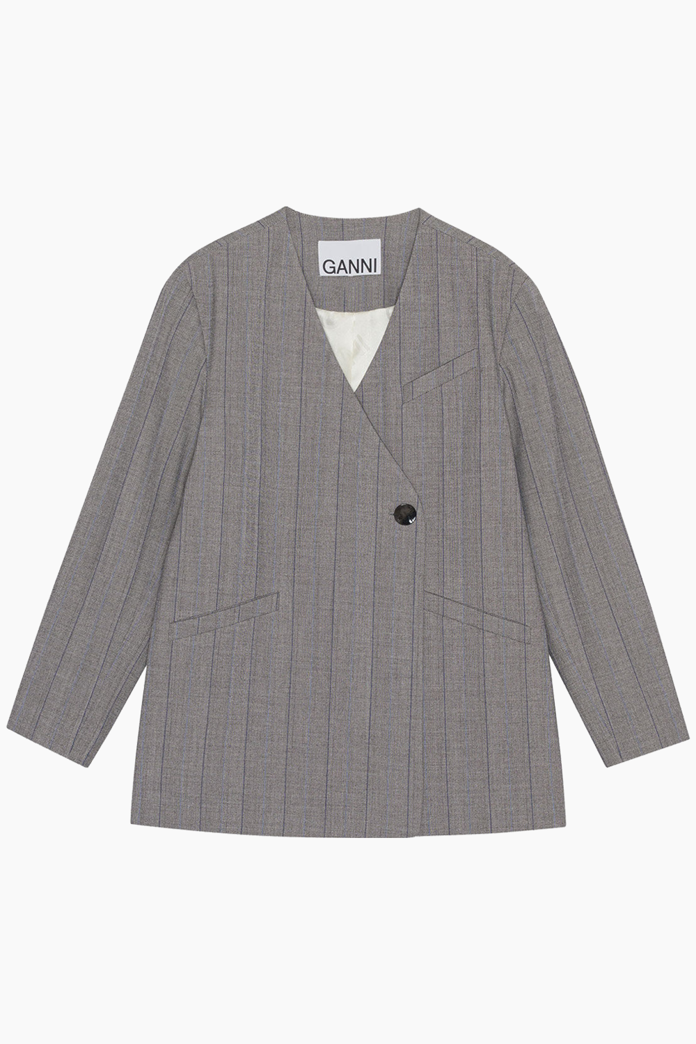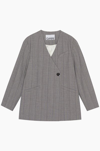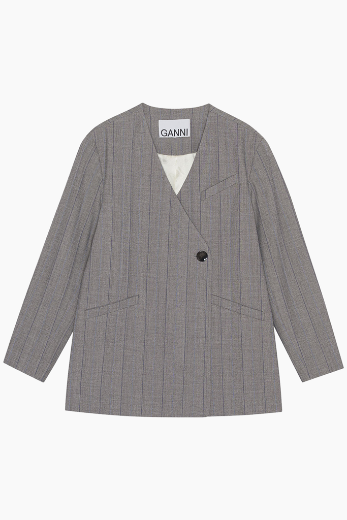 Wool Stripe Blazer A1020040 - Pewter Melange - GANNI