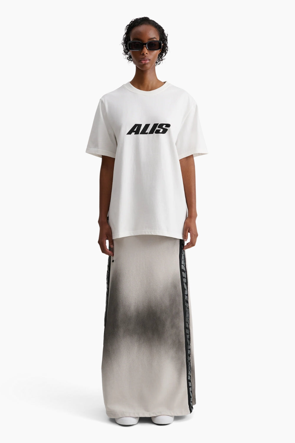 Jeron er en kortærmet jersey t-shirt i cropped fit, lavet i mellemvægtig bomuld for komfort og holdbarhed. T-shirten har en ribbet crewneck-krave og et stort ALIS-logo på brystet. Designet er unisex og har en lille pasform, så den sidder mere tætsiddende.
