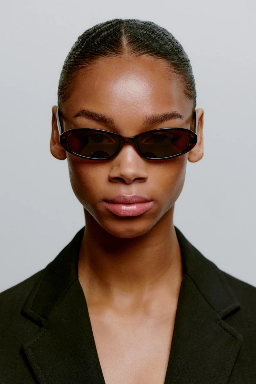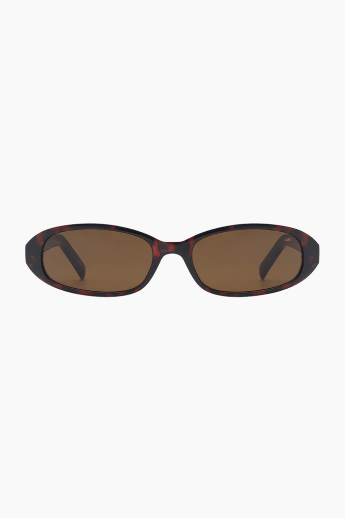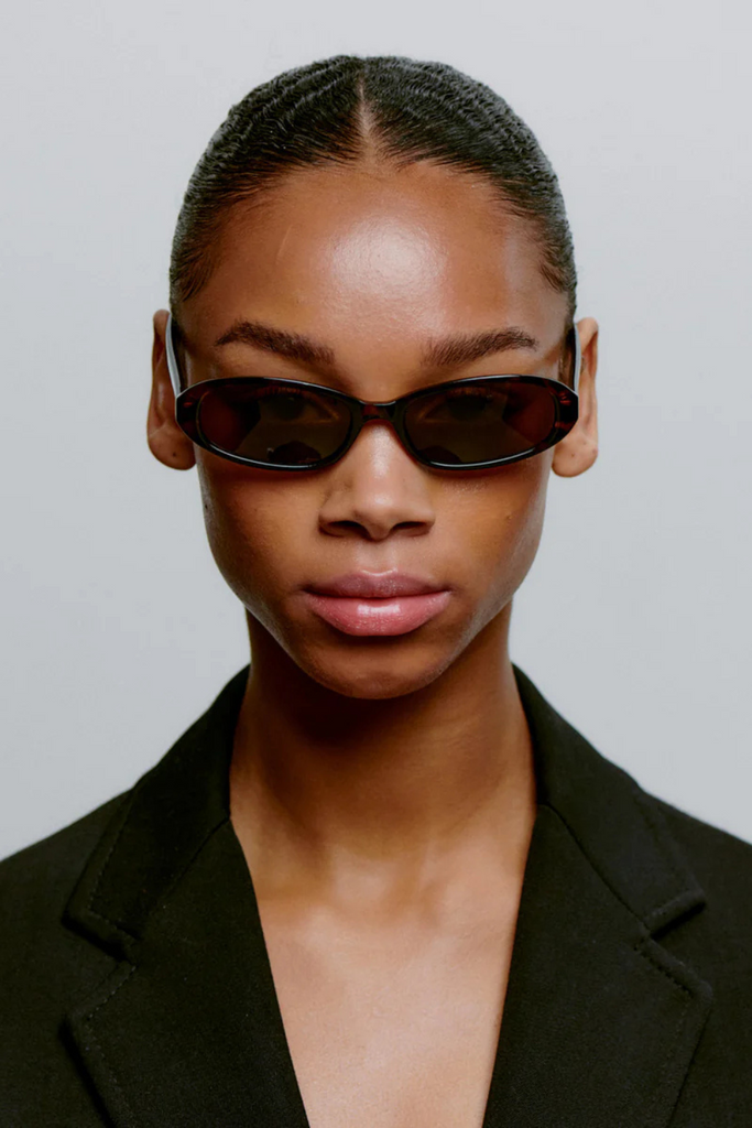 Macy i farven Demi Tortoise fra A. Kjærbede er en cool smal solbrille med et afrundet stel. Solbrillen er inspireret af 90'erne med oval smalle linser, der tilføjer lige dét ekstra til dit outfit!