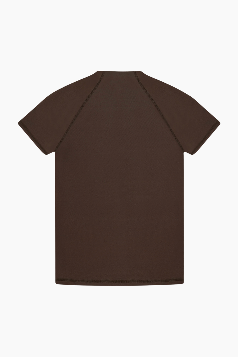 Mock Neck Stretch T-shirt er lavet i et blødt, fleksibelt funktionsmateriale, der sikrer optimal komfort og bevægelsesfrihed. Den har korte raglanærmer og en høj krave med et rent, sømløst udtryk. Den tætsiddende silhuet gør t-shirten ideel til både træning og hverdagsbrug. Et diskret hvidt logoprint pryder fronten.