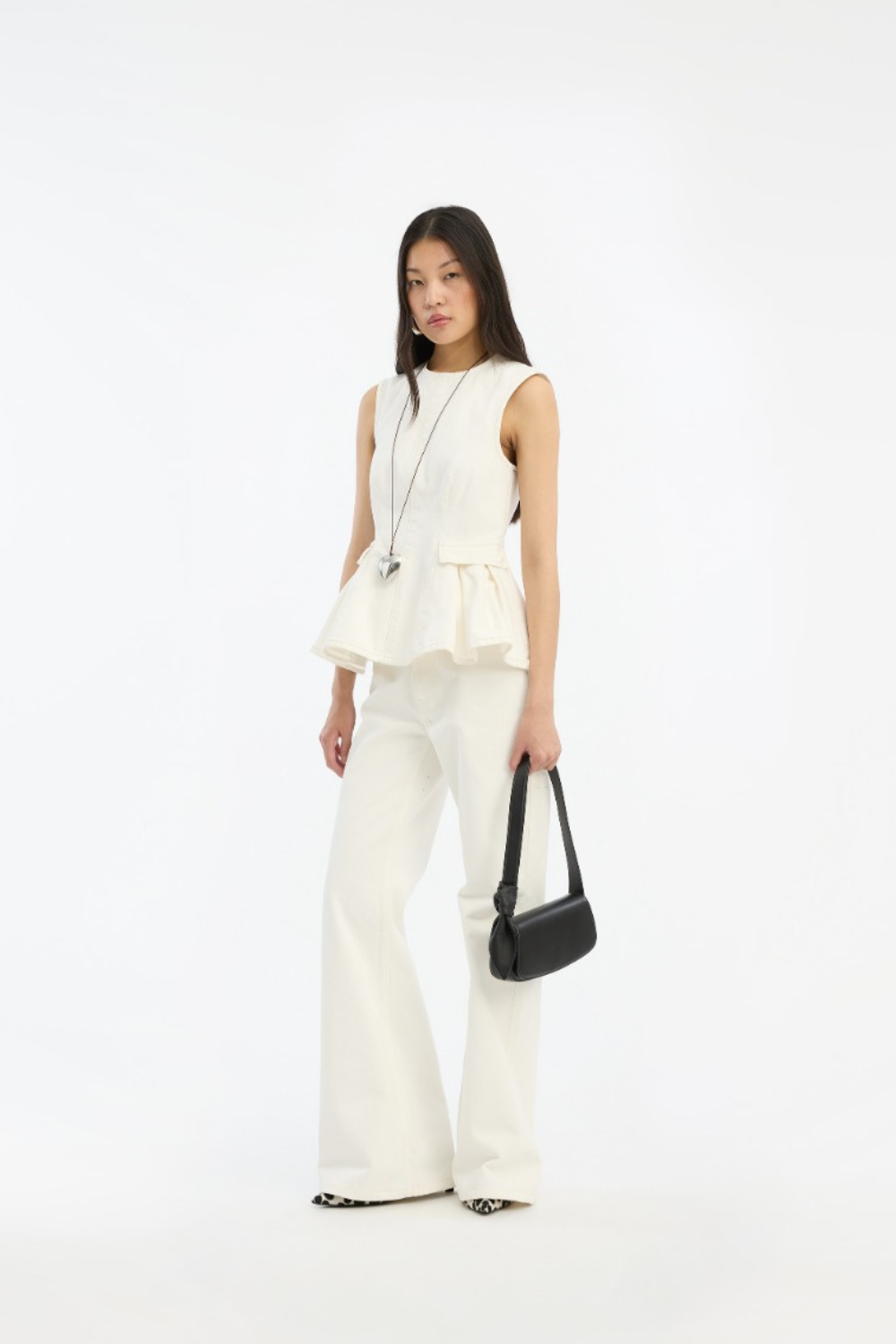 Peplum Denim Top - Raw White Denim - Rotate