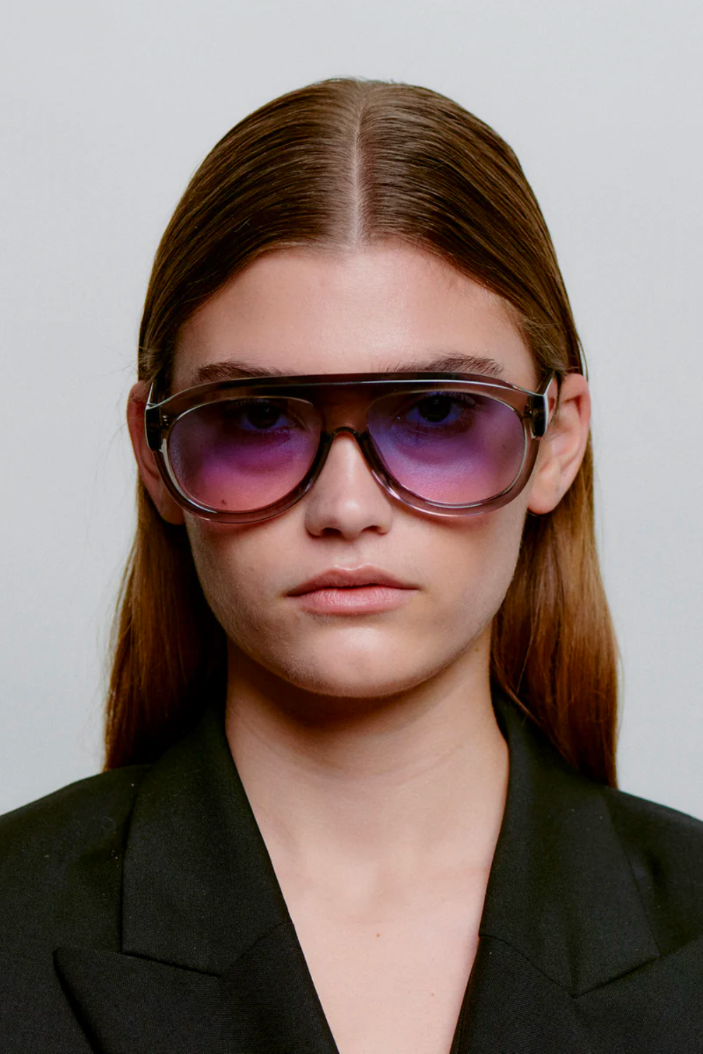 Rio i Ecru Transparent er en moderne fortolkning af den ikoniske pilotform, opdateret med en kraftig og arkitektonisk ramme. Den rummelige silhuet giver et markant og fashion-forward udtryk. En statement-solbrille skabt til lyse dage og til dig, der gerne vil skille dig ud med selvsikker stil.