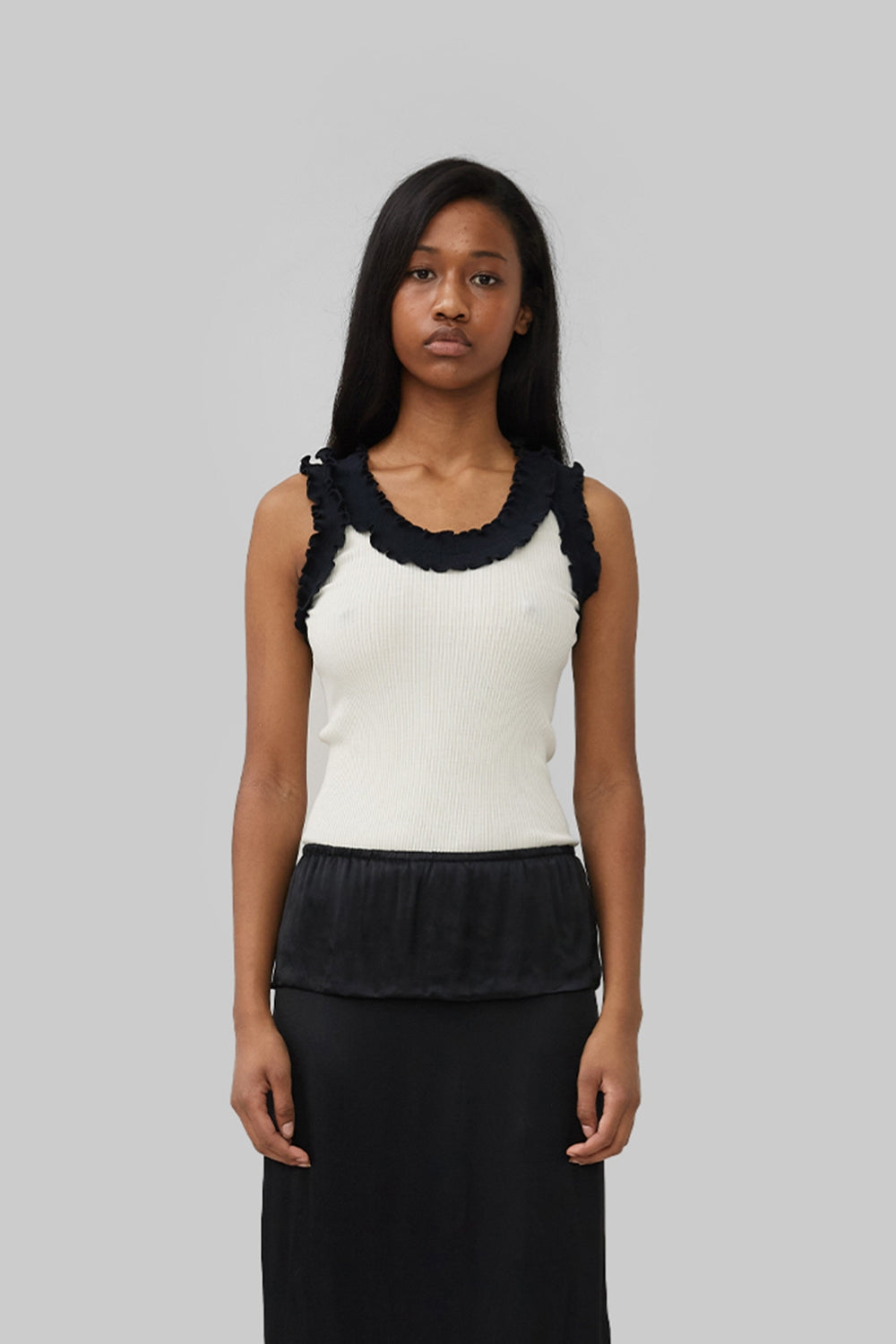 Rosalie Seamless Top i farven White fra OpéraSPORT er en feminin, elegant top i den smukkeste farve, der passer perfekt til både hverdag og fest. Den er fremstillet i 100 % økologisk bomuld og har en blød, tætsiddende pasform, der føles behagelig mod huden. De fine flæsedetaljer langs halsudskæringen og ærmekanterne tilfører et romantisk og sofistikeret udtryk, mens den sømløse konstruktion skaber en elegant og strømlinet silhuet.