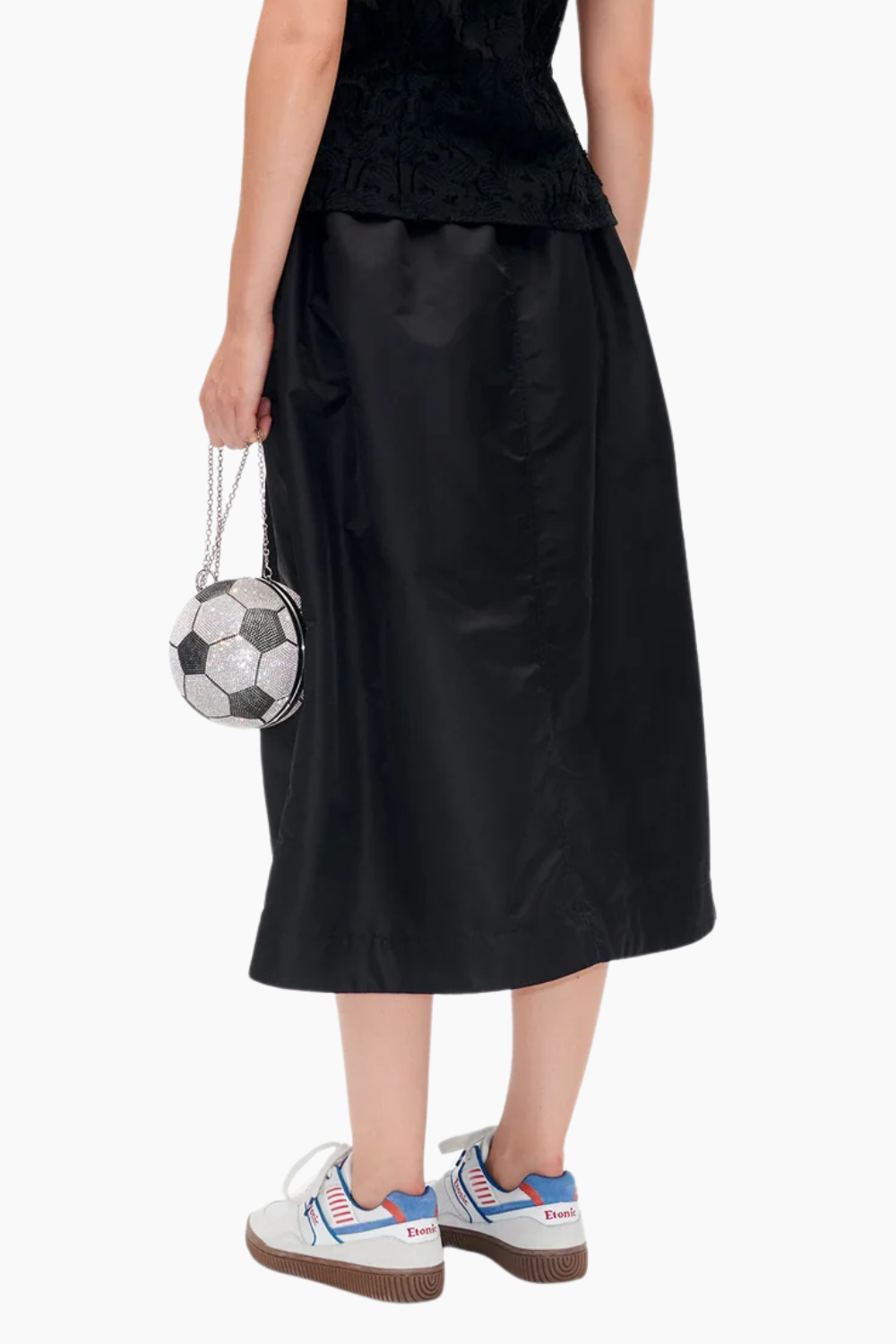 Sibella Skirt i farven Black fra Baum und Pferdgarten er en flot A-formet nederdel. Nederdelen har en flatterende og komfortabel pasform med elastik linning i taljen og lavet af letvægtsnylon. Sibella nederdelen har en midi-længde samt to skjulte sidelommer.
