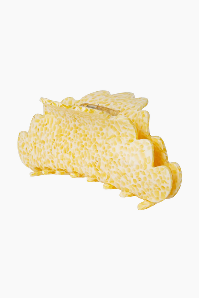 Simone Mind Big i farven Sunlight fra Sui Ava er en super flot hårklemme i gul. Hårklemmen har et smukt udtryk da det gule blender sammen med de hvide detaljer. Den er perfekt til dig med det kraftige hår, så du kan sætte dit hår op både til hverdag og fest.