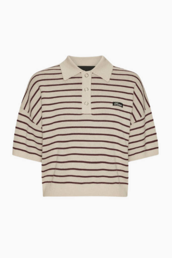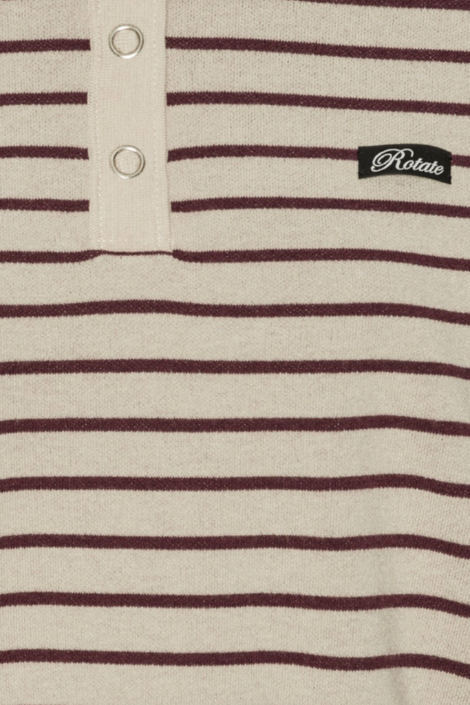 Den stribede Slinky Knit Polo fra ROTATE kombinerer komfort og kant i én stilfuld pakke. Poloen har en afslappet silhuet med korte ærmer, klassisk krave og frontåbning med tre metalliske øsken-knapper, der tilfører et moderne twist. Ribkanter ved ærmer og søm giver et gennemført udtryk, mens det diskrete ROTATE-logo på brystet fuldender designet. En alsidig tilføjelse til enhver garderobe – perfekt til både hverdagsbrug og afslappede anledninger.