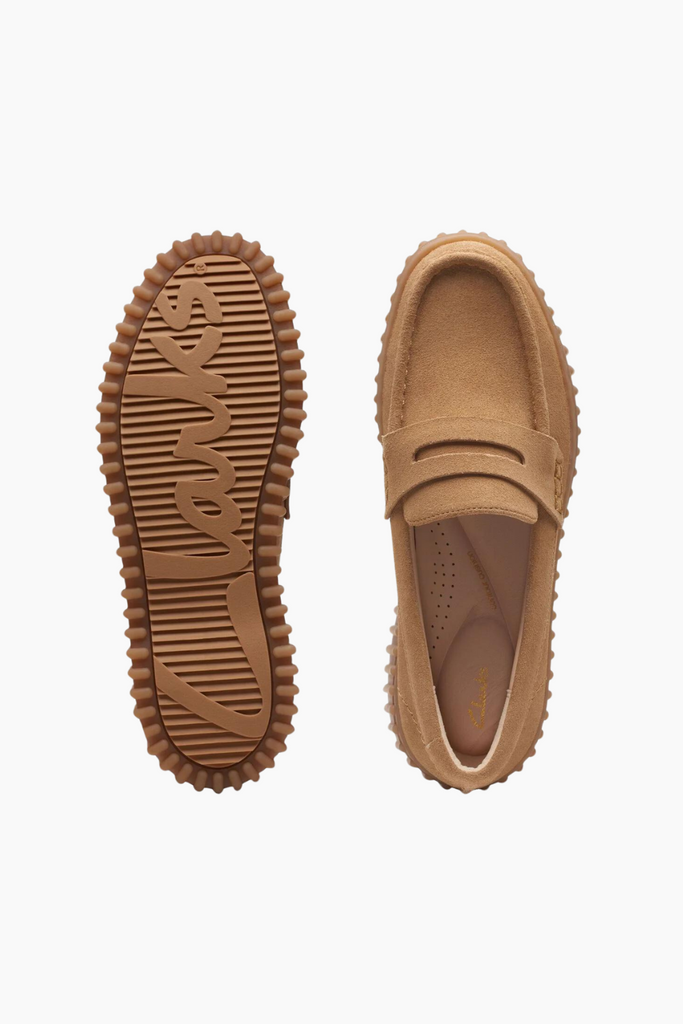 Torhill Penny i farven Light Tan Suede fra Clarks er en fed sko i ruskind. Skoen er super behagelig at have på hvilket skyldes den gode komfort. Med dens Grippy TPR(Thermoplastic rubber) ydersål, er skoen let. Den tykke sål er inspireret af 90'erne, og giver et fedt look til skoen. Hælhøjden er 40 mm. De perfekte sko til lige at glide i, og se stilfuld ud!