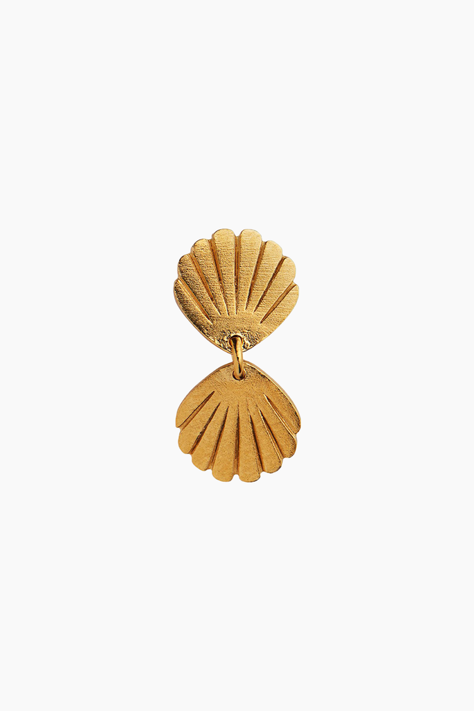 Two Petit Shell Earring i farven Gold fra Stine A er en Fin, lille ørestik med motiv af en musling, og vedhæng af en musling magen til.